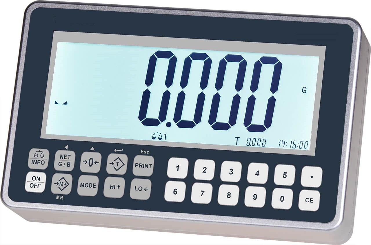 Die Bedienung erfolgt über eine feuchtigkeitsgeschützte Tastatur mit 22 Numerischen- und Funktionstasten. Die großen Tasten besitzen einen spürbaren Druckpunkt und geben somit Sicherheit beim Bedienen. Das 60 mm große Display mit 6 kontraststarken Ziffern und Statussymbolen ist auch aus größerer Entfernung sehr gut lesbar. Bei ungünstigen Lichtverhältnissen sorgt eine LED-Hinterbeleuchtung für gute Ablesbarkeit. Die Hintergrundbeleuchtung ist über ein Menü einstellbar. Das Gehäuse wird über VESA 75 befestigt und hat serienmäßig eine Tisch- / Wandhalterung. Ein Stativ ist optional lieferbar.
