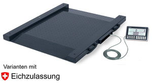 Die extrem flache Wägebrücke aus pulverbeschichtetem Stahl ist außerordentlich robust und rutschfest. Sie ist mit vier laserverschweißten Wägezellen ausgestattet. Die kurzen und flachen Auffahrrampen sind in der Wägefläche integriert. Dies ermöglicht mit geringeren Kraftaufwand eine manuelle Beschickung der Waage. Die äußerst robuste Konstruktion verfügt über eine erhöhte Tragkraft. Transportrollen und Transportgriff ermöglichen einen leichten Transport der Durchfahrwaage. Wie bei allen unseren Waagen sind auch hier alle Kabel und Wägezellen geschützt im Rahmen verlegt. Die Waagenplattform ist mit einem 5 m langen (bei nicht eichfähigen ist eine längere Kabelverbindung möglich), stahlummantelten Kabel mit der Anzeige MCI verbunden. Mit den zwei eingebauten Transportrollen kann die Durchfahrwaage einfach von einem auf den anderen Platz transportiert werden. Das Anzeigegerät kann mit einer serienmässigen Halterung an einer Wand befestigt oder auf einem Tisch aufgestellt werden. Ein Stativ ist optional lieferbar.