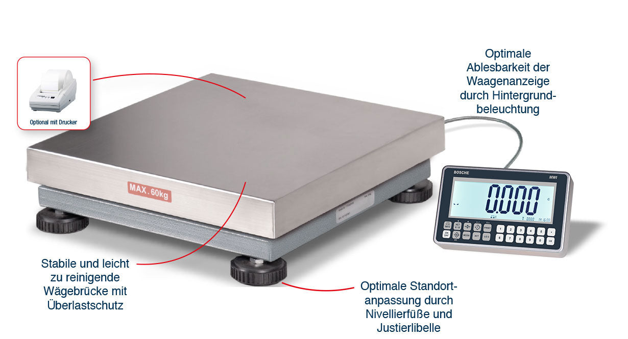 Wägebrücke TP 4040-60 MWI-T| 400 x 400 mm | 60 kg | 20 g