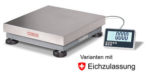 Die Wägebrücke TP wird in einer geeichten Variante mit der Waagenanzeige EWI-T * oder für nicht eichpflichtige Wägungen mit der GTE-T Anzeige angeboten.